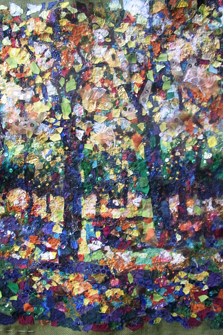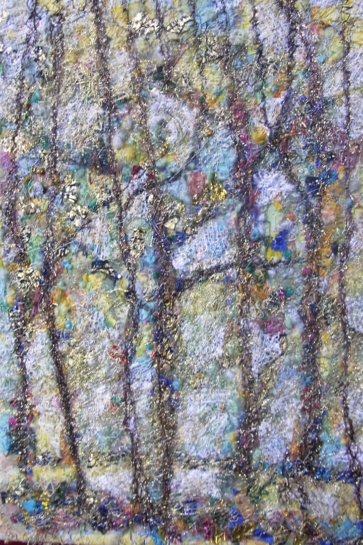 Forest Trees in Collage and Stitch Inspired by Gustav Klimt