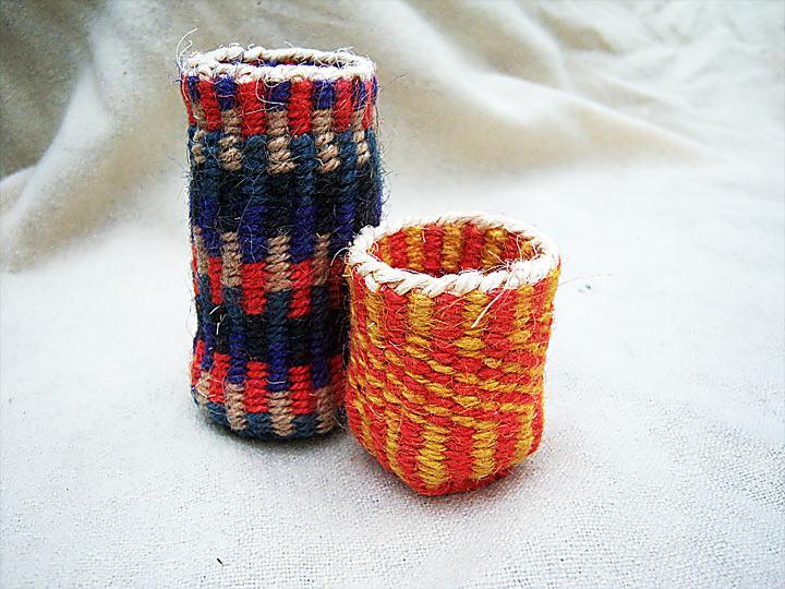 You will start using paper string to practice a basic method of beginning to twine by making a small sample piece, and then use colourful jute twine (with the option of including some other materials) to make a small twined pot.
