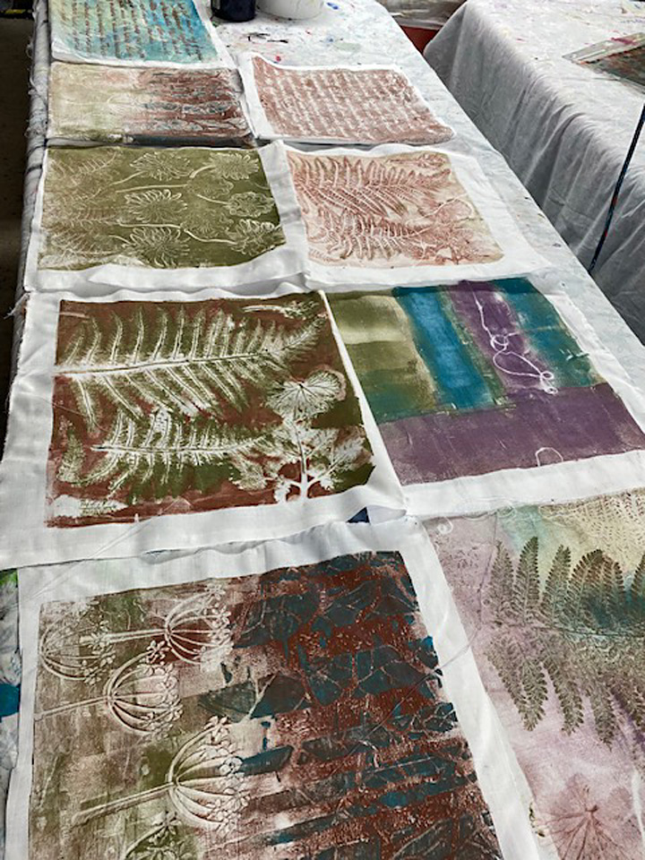 You will start with the basics of gel printing on paper using a variety of printing blocks, stencils and texture-making tools. You will then move on to printing on, and with fabric. This is a super quick and fun process so lots of prints can be achieved in a short space of time!
